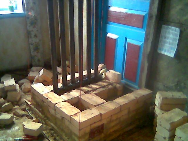 Дверь спереди ес-но по завершению всего была убрана, стена подпилена по ПБ и.т.д. Топка идет спереди, т.е. перед печкой как бы маленький грот.