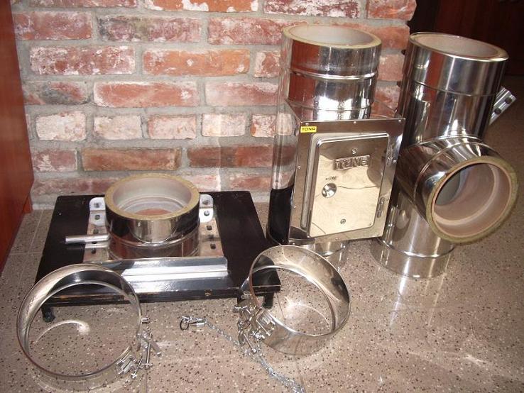 При внимательном осмотре...легкий как сэндвич а внутри керамка. Есть и отводы и опорные плащадки и тройники и прочистки ...всё как у сэндвичей с нержавейкой ...только внутри надежная керемика.