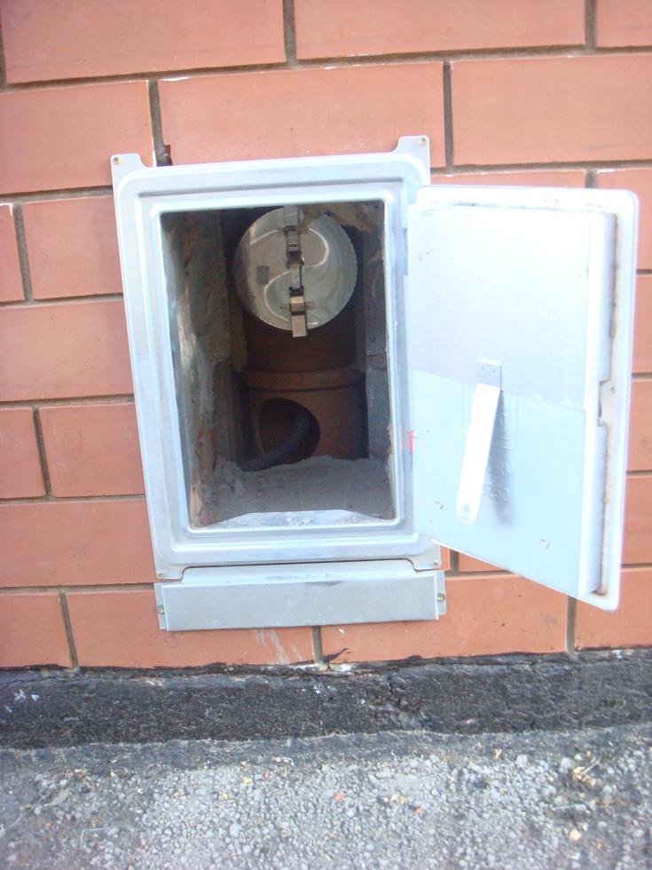 Дымоход спрятан в стену.