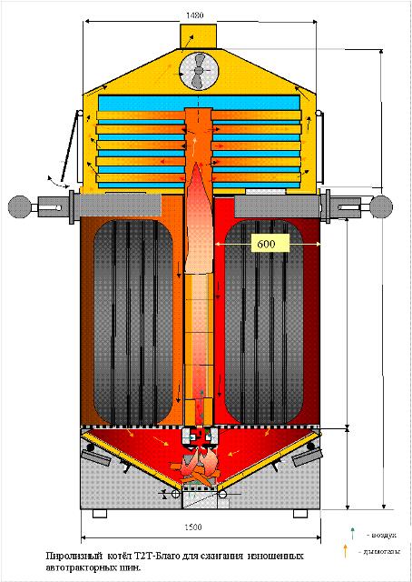 Вот почему ко мне неоднократно поступали предложения о создании такого пиролизного котла, в котором можно было бы сжигать изношенные автотракторные шины для отопления помещений.