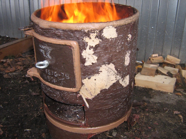 А вот собственно и печь через 10 минут работы(шпатлёвка термоксил 2 слоя и 3 слоя краски термоксил..