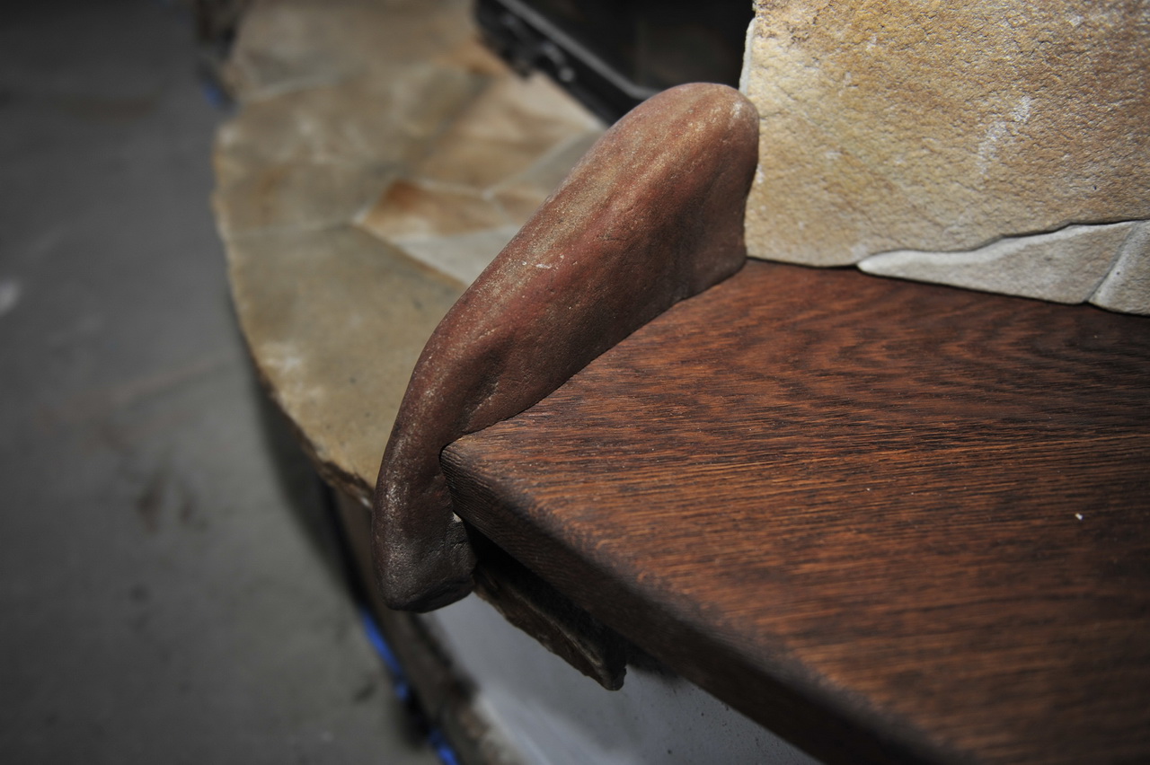 Камин в стиле "Кантри" сделан на основе каминной топки Schmid Pano 67 h .