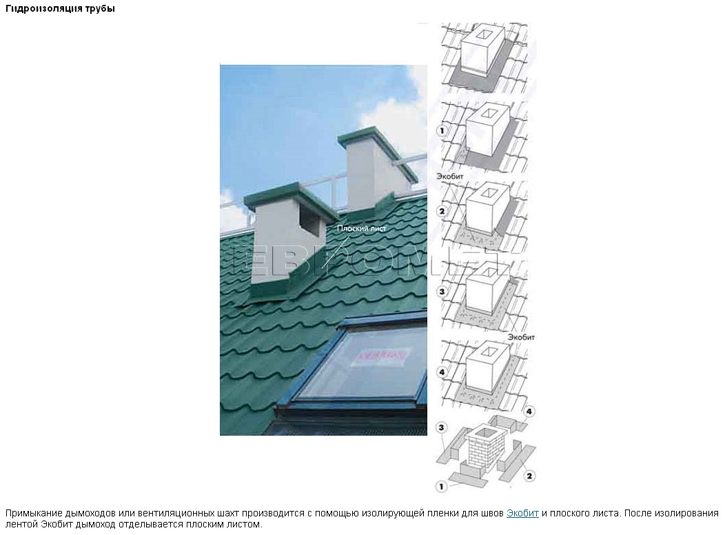 Проход через кровлю дымовой трубы и примыкание к трубе Следующая тема