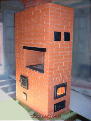 Cо стороны кухни (справа на картинке) - варочная панель, со стороны комнаты (слева) - просто отопительная печь. Размер топок по ширине 35 см., по длине не меньше 50 см.