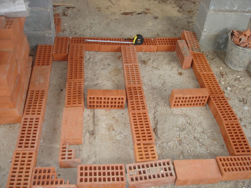На картинке - кирпич на ребре и две полоски в полкирпича посередине - шамот.