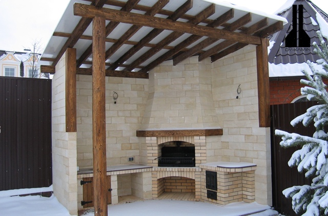 размер беседки 4*7 камин угловой + печка под казан.