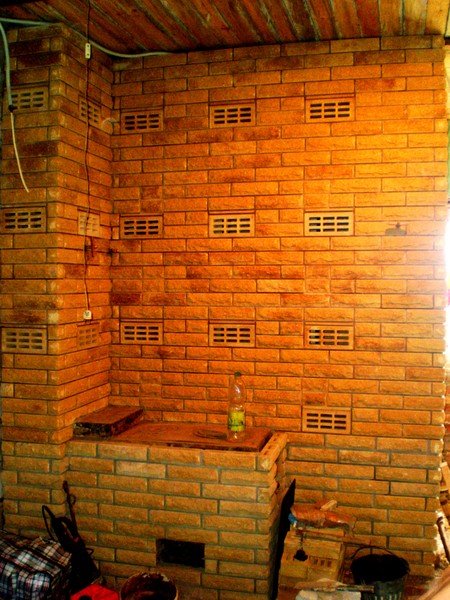 Dmitry, судя по планировке, дом 6х6, у тебя должно быть разделение помещения: небольшая кухня, прихожая и небольшое помещение, которое может поделиться на еще 2 комнаты. Между ними должен быть простенок, в котором можно разместить обогревательный канал. Этим мы "убиваем 2-х зайцев": у нас тепло и раздельные комнаты. На остатке вашего фундамента можно поставить камин или сделать хлебную камеру. Лично я за ХК, но у нас были приняты духовые шкафы где все пекли и парили.