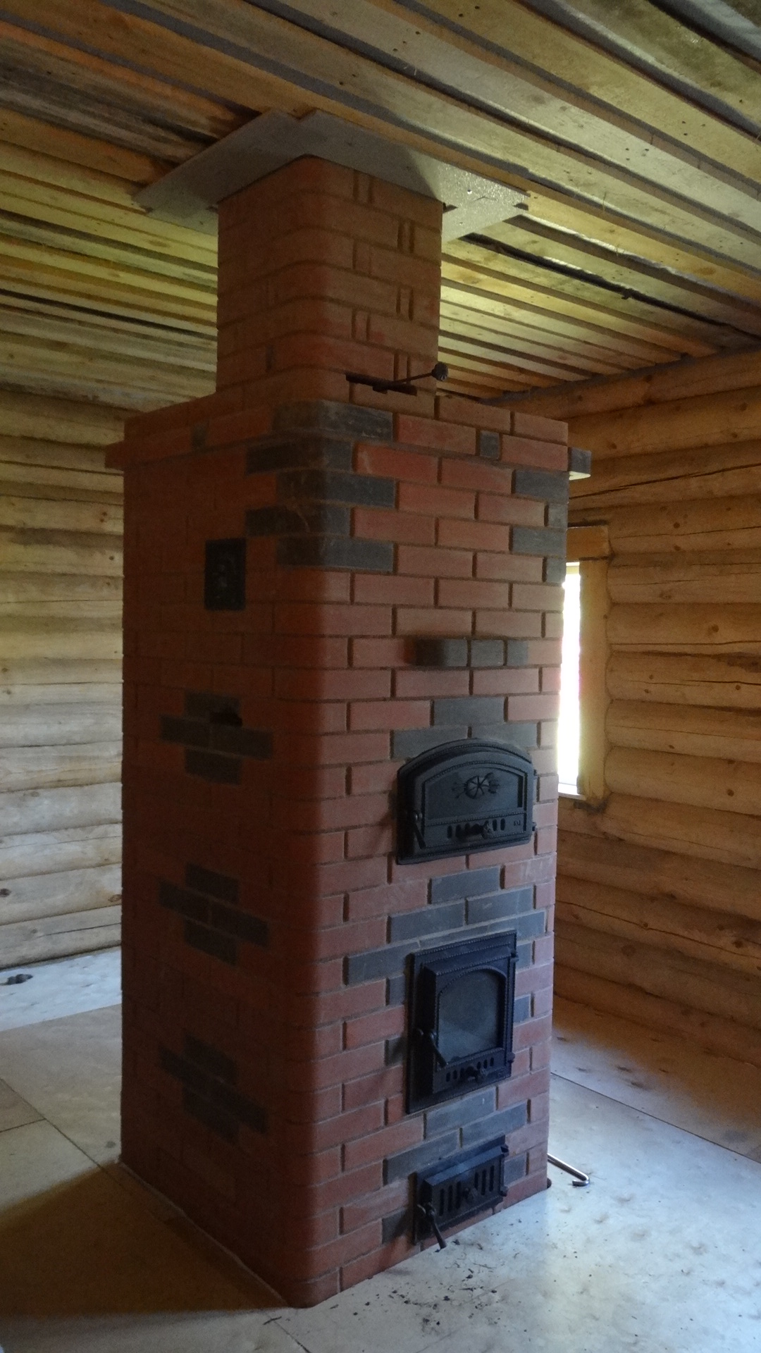 Топили поздно вечером. 11 березовых поленцев длиной 35-40 см.. Одна закладка 5 поленцев и две закладки по 3. Т.е. топили, строго говоря, не по полной программе. Стекло на топочной дверце очистилось от сажи, а ХК нет.