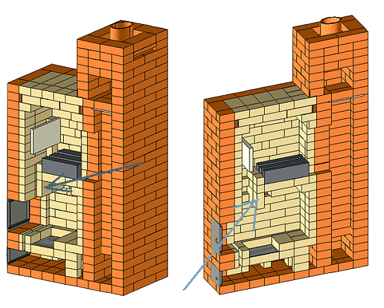 | Вместо них устанавливаем целый кирпич ША8 и 3/4 формируя горелку |