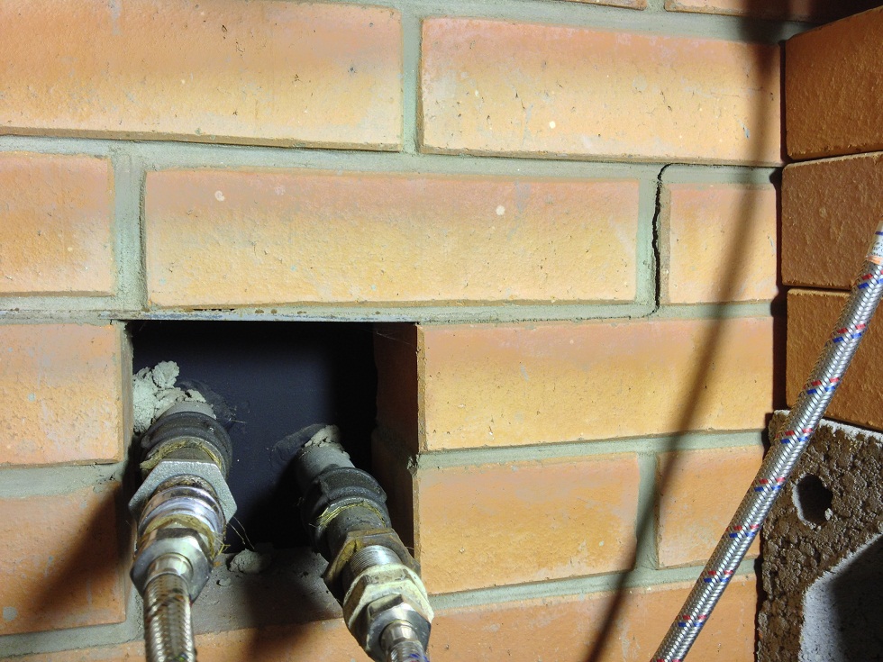 Что касается трубы, никакой вставки нет, как показано на фото до зигзага идет керамика (бетонный блок, минвата, керамика), а дальше только кирпич.