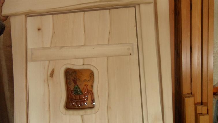 Материалы : пробка в качестве тепло и пароизоляции, полубревно липа с чЁсом в качестве отделки стен и потолка, доска липа 90мм это полок, окно для проветривания, короб-угловой элемент из доски липа с теснением по периметру парной, съемные слани-трапы на полу.