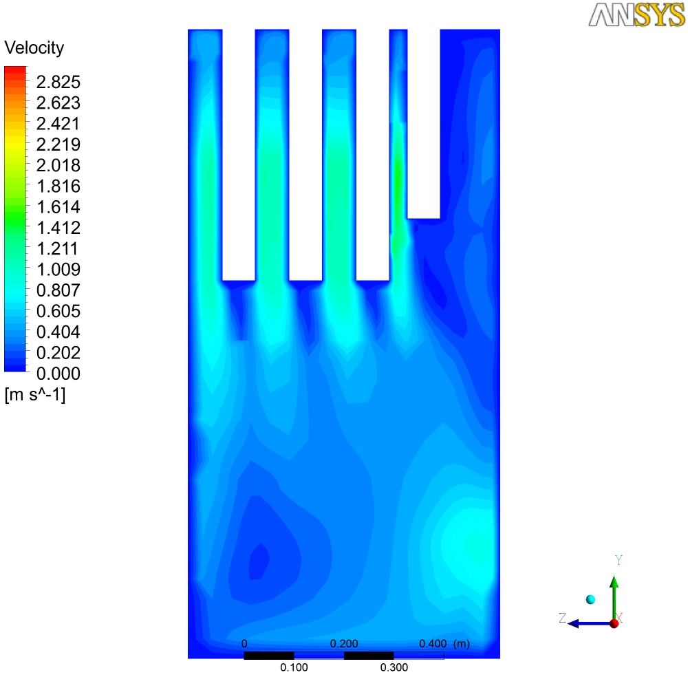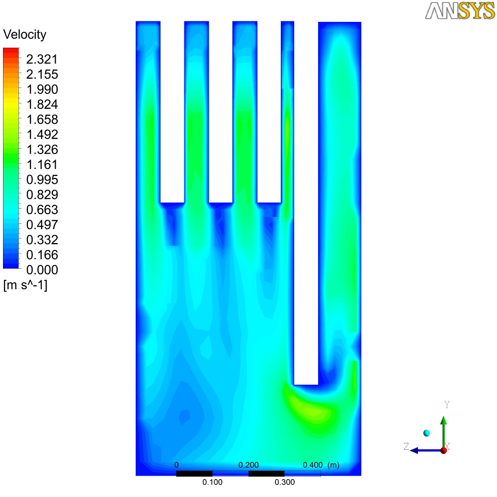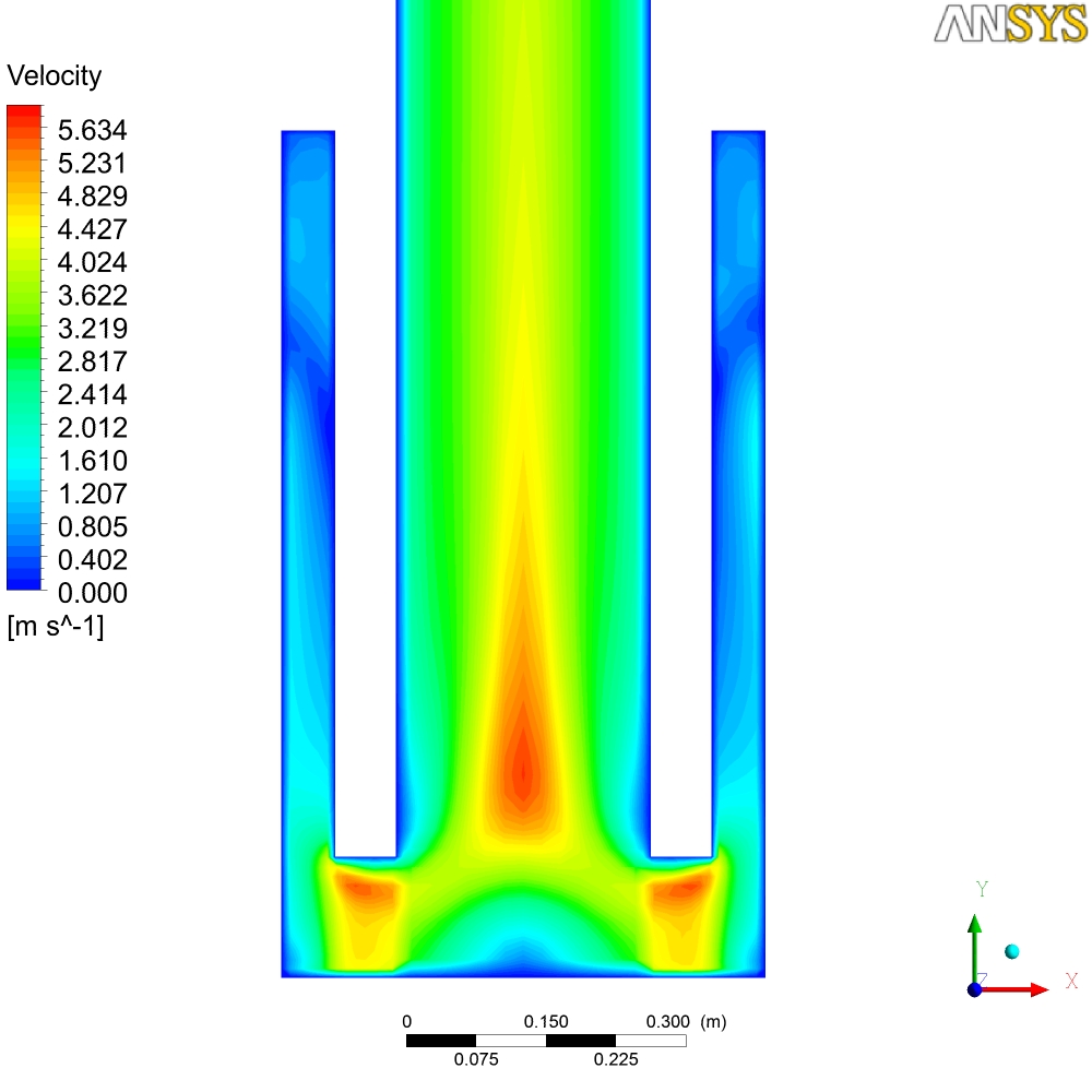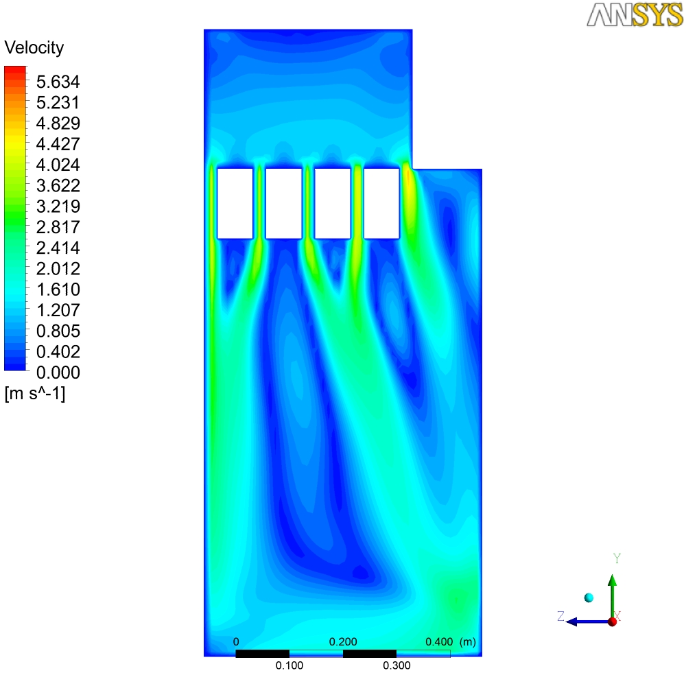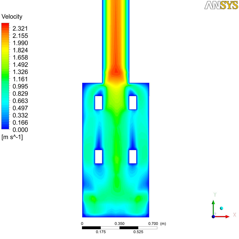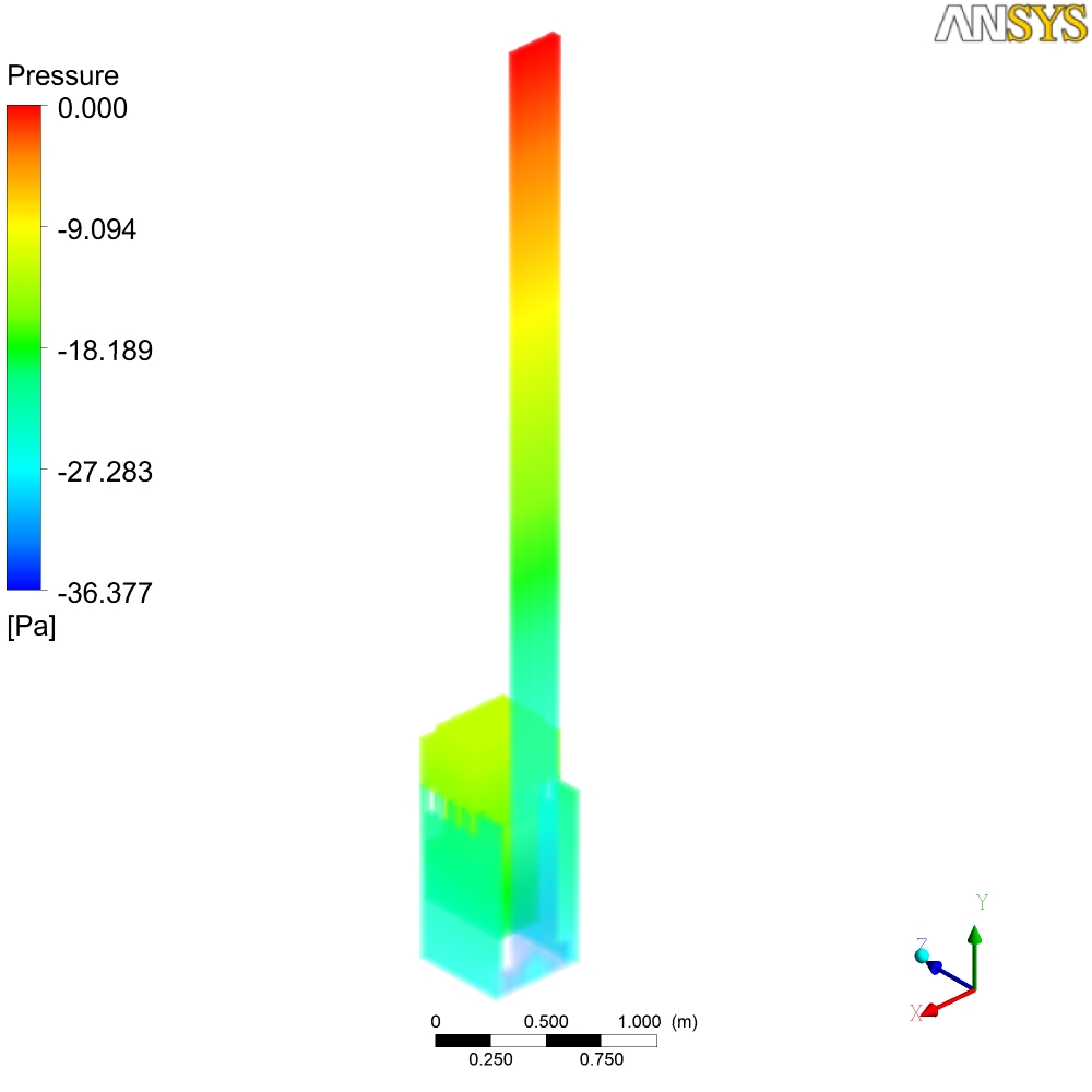 В общем-то там на картинках печь просчитанная в Ansys, начальные условия - 700С. Тяга от трубы... Могу сделать любой разрез по температурам, давлению, скоростям и т.д. Единственное, что не учитывется теплопроводность стенок - они адиабатны - т.е. то что мы видем - не температура стенок печи, а температура пламени и газов...