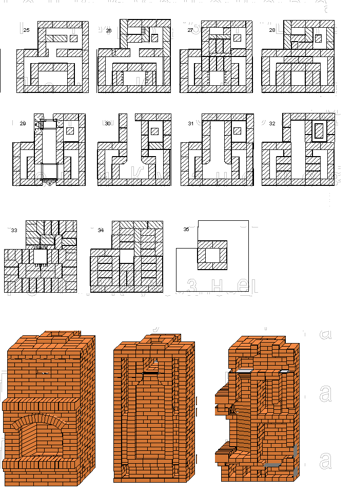 4. На 18 ряду появляются отверстия сообщающиеся с воздухом в комнате. Я так понимаю, что нужны они для выхода прогретого воздуха в помещение. Но по порядовке они соединяются с дымоходом. Все верно в порядовке? Дым не будет попадать в помещение?