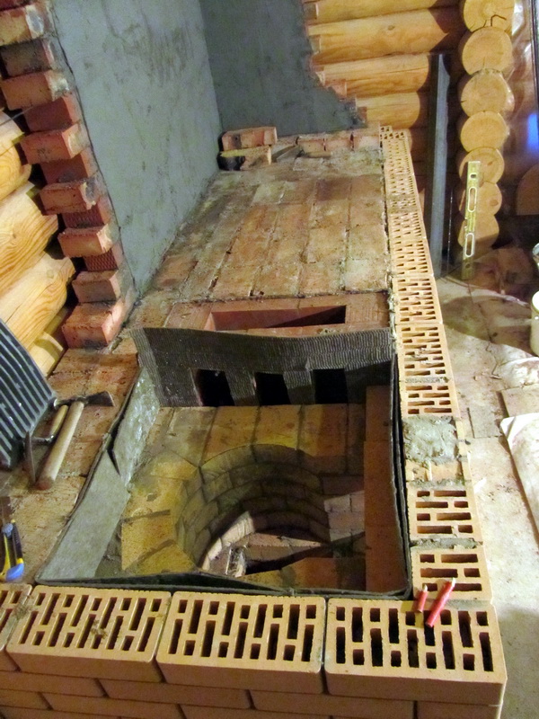 Топка печи-казана (противопожарная раделка) сделана немного по другому.