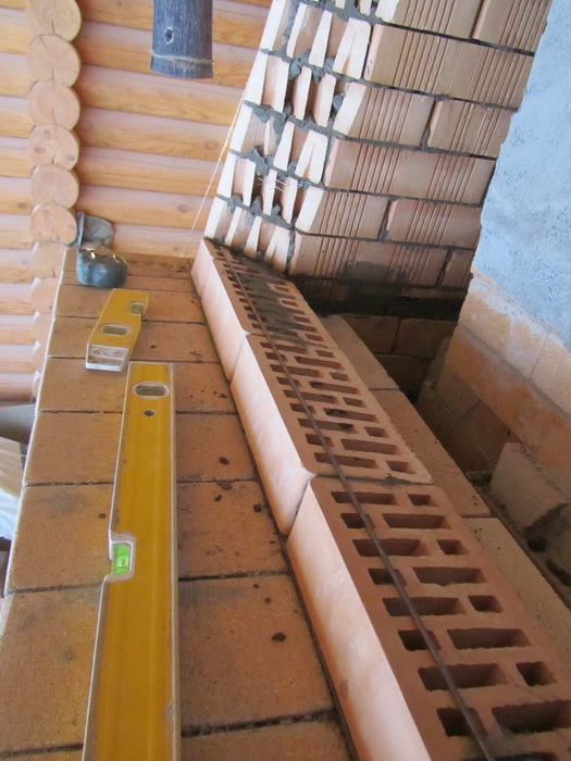 Между 3-4 рядом сетку заметил. А на первом руду что лежит. Если не шпилька, то на арматуру похожа? И еще вопрос, угол наклона стенок короба Во всех каминах и мангалов разный? И как определить сколько надо срезать у кирпича, первого ряда.