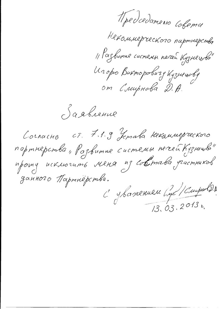 Официальное Заявление о выходе из состава участников Партнерства и Учредителей.