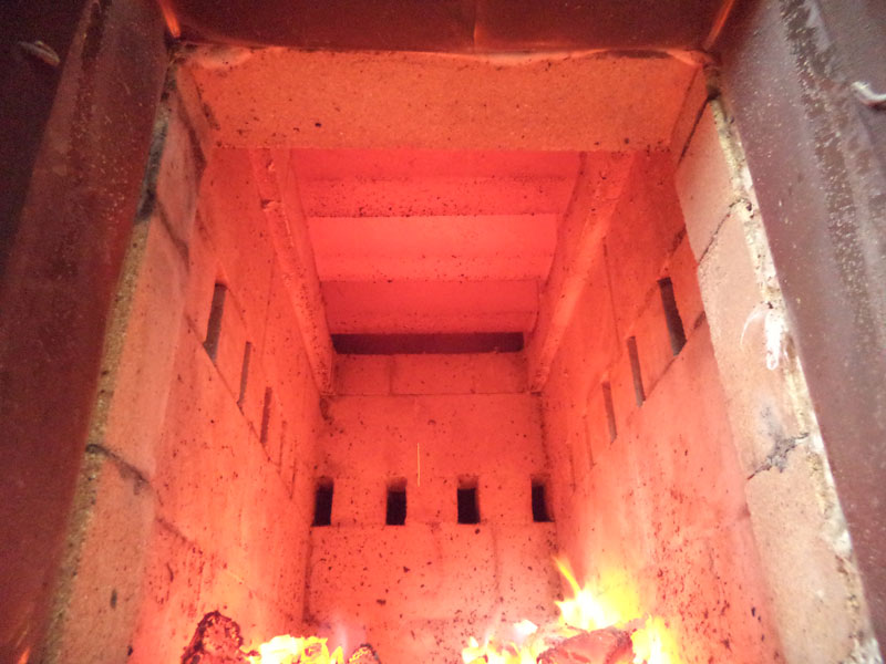 После нескольких экспериментов поставил вторичку отдельным каналом и на третьем ряду, не под катализатор, результат порадовал. На 4-й закладке выжег всю сажу после просушки, камни малиновые, чугунина алая.