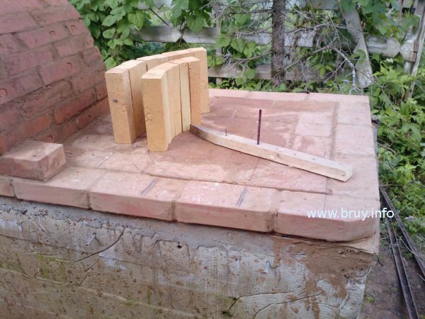 «Стоунхендж», ядерный реактор? Получилось так, осталось сделать перекрытие и доделать угды. топка в плане будет прямоугольной снаружи. Подсобник проверял правильность изготовления кирпичей для перкрытия.