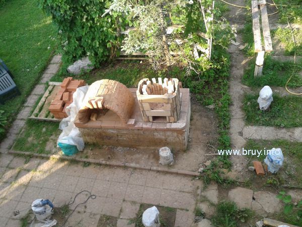 Андрей Алексеевич, на фото перекрытие дровника. Над ним будет мангал, но без опции русской печи. Я его сделал сводчатым на всю глубину просто ради интереса, хотелось попробовать сделать свод как в русской печи. Вообще кирпич кладу первый раз в жизни . Русская печь, духовка, тандыр будут у меня в одном флаконе, в виде цилиндрической топки плиты для казана.