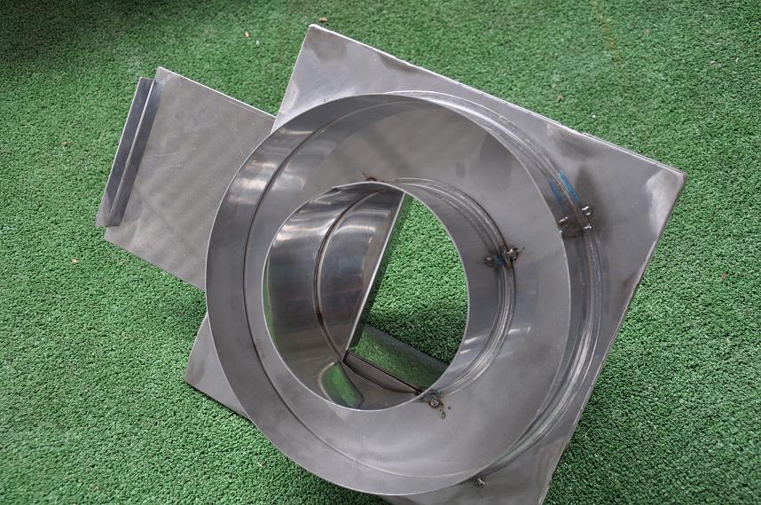 Компания Инжкомцентр по запросу участников Мастер Класс в Суздале изготовили опытный переходник. Даже снабдив его шибером/заслонкой (на сколько нужно это не знаю)