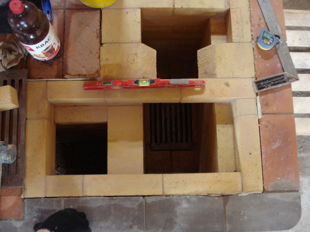 Прошли перемычку, врезали разреженный колосник сечением 12х30 см. В варочной камере сделали 4 опускных канала, вместо пяти. Изправили ошибку Кузнецова, оперев рамку плиты SVT на шамот (фото), тем самым защитив от локального нагрева. Спасибо Александру Замашка.