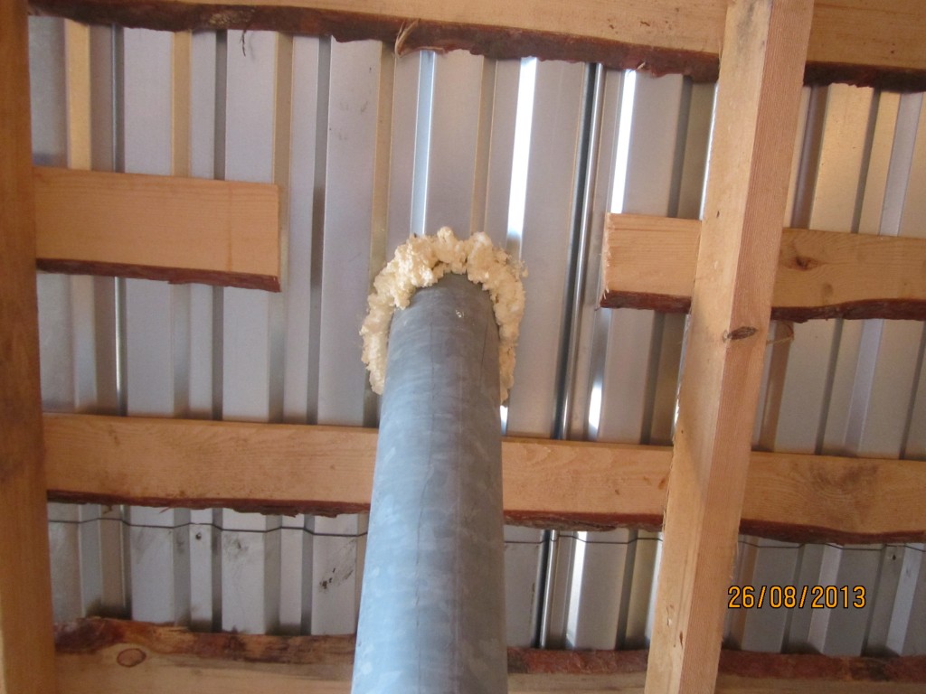Пеной щель залить у голой трубы... это перебор , как теперь с этим жить?