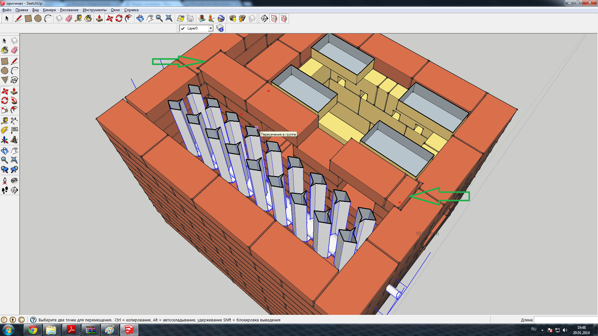 а на разделительной стенке кирпичи врезанные во внешнюю стену надо не на глину , а так же в базальт. картон или вату ( не учел этот момент -мало знаний и опыта)..