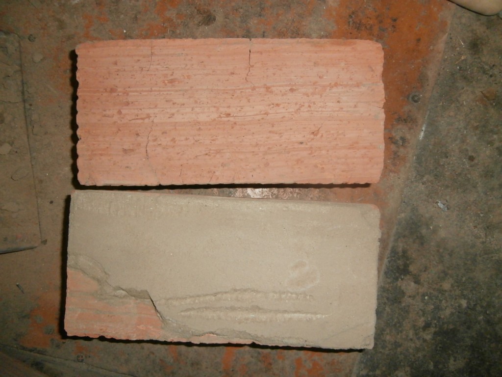 Для тестирования раствора,я один кирпич вымочил в воде,со второго просто стёр пыль щёткой.Намазал раствор на кирпичи ровным слоем,толщиной около 5 мм.Просушил оба.Попробовал раствор на крепость,на вид оба одинаковые,с одного замеса всё-таки.Раствор со второго хоть и с трудом,но снялся шпателем и от него не осталось и следа.С первого же снять раствор я так и не смог,сдалбливал кирочкой.