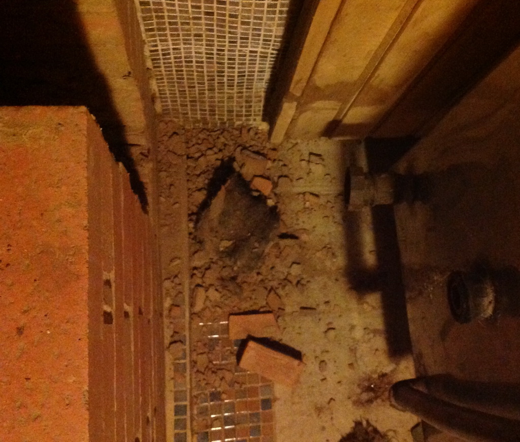 Пришлось разобрать пол печи,чтобы регистр достать