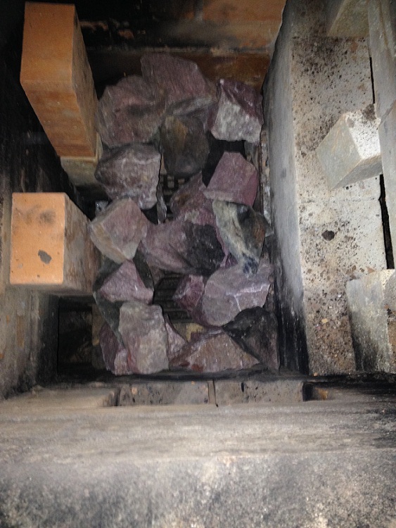 Я решил немного переложить закладку в каменке, купил дополнительно 20Кг крупных малиновых кварцитов, радовала мысль, что сделать это очень легко, имея вместо перекрышы чугунную плиту, как результат обзорность и легкодоступность каменного отделения.