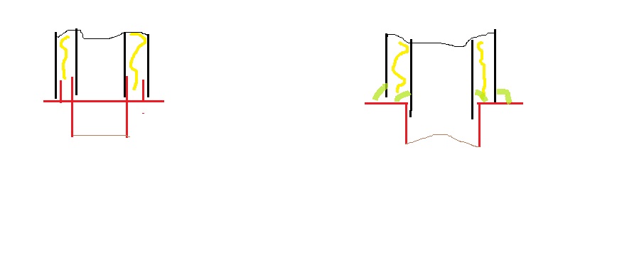 Владимир, конечно, можете оставить как запланировали. Но для наглядности на скорую руку набросал схемку. Зеленным указывается конфигурация сопряжения. Как думаете, где газопроницаемость (как на подсос, так и на выхлоп) лучше? Так что принимайте решение и действуйте.