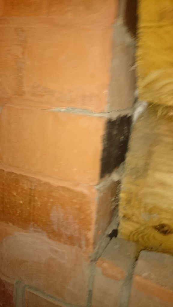 Обратите внимание на черный бок крипича в углу, он почемуто закопчен... Сразу скажу, что это не "через щель" дым туда не поступает. Таких кирпичей нашел на этой стороне аж 4 шт,