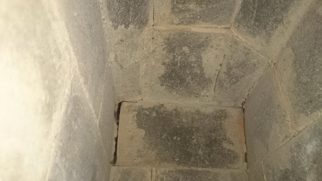 В целом заделанные мной трещинц не прогрессируют, но вот эта трещинка, появилась этой зимой (справа второй ряд над вьюшкой).