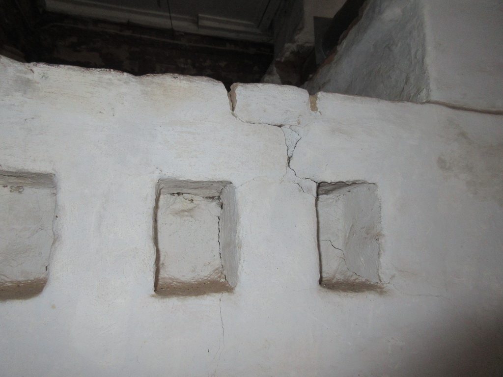 свод шестка опирается на железную полосу. Там где полоса замурована в печь, тоже щели появились. Из-за разницы в температурном расширении, как я понимаю.