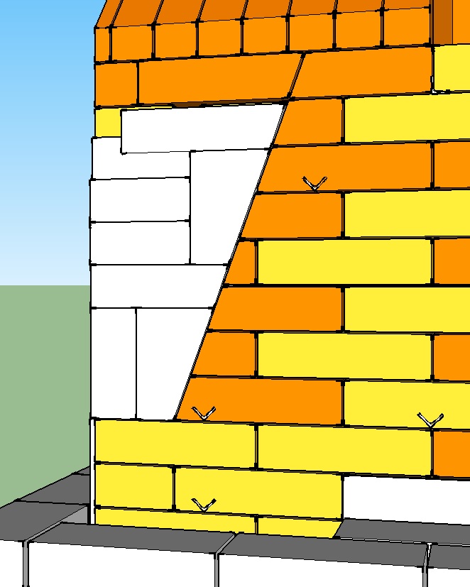 Нужен там пустотелый зуб или нет.. это отдельный вопрос. Но то что Ваша конструкция не будет делжаться хоть без смеси , хоть со смесью.. это очевидно. Если Вы собираетесь использовать обычные кирпичи, а не эксклюзивные материалы, котрые например использует Андрей, то я Вам очень рекомендую переделать конструкцию так, что бы пусть даже при виртуальной сборке насухо не создавалось впечатления что все рухнет.