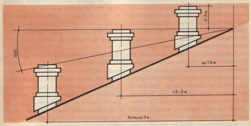 "Высота головки трубы сверх крыши зависит от того, на каком расстоянии она отстоит от конька.