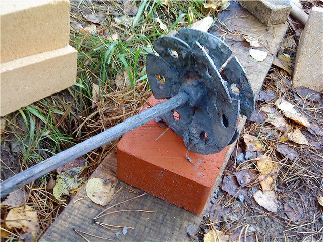 Глина замачивалась недели 3. Вчера попробовал разбить комки покупной насадкой, как на фото у IgorUA. Бесполезно. Пришлось из катанки колхозить. Дрель на 700 ватт, справилась с 30 литрами замеса. При работе даже воронка на поверхности. Считаю, имеет право на существование, не требует сварки.