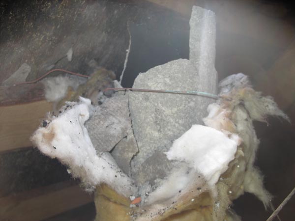 азбестоцементная труба вставляется в выпускной(последний)каннал. над печью обкладываем газобетонном, промежуток заполняем