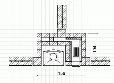Драгомир здравствуйте! Подойдет любая металлическая топка 9-11кВт, лучше чугунная от известного производителя, который дает гарантию на свое изделие не менее 5 лет. Мощность топки увеличиваем на пару кВт за счет "теплосборника", расположенного над "кассетой" и выполненного из нержавейки. " Тепловые рукава" (воздуховоды)выполнены из гофры диаметром 130мм и осуществляющие забор горячего воздуха из отверствий в "теплосборнике". Забор холодного воздуха происходит через отверствие в своде "дровеника". Переключение режимов работы с печи на камин и обратно производится заслонкой, расположенной в задней стенке печи, посредине отопительного щитка.