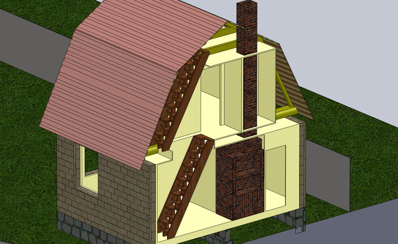 Если делать данную модель как единое целое то тут и ребенок у меня справиться. Нарисовал, поднял, наложил текстуру, плиту по месту нарисовал . И все.