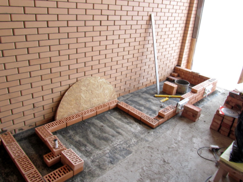 Пока идет только облицовка из щелевого. Топки и все внутренности комплекса из полнотелого кирпича, с зазором от облицовки.