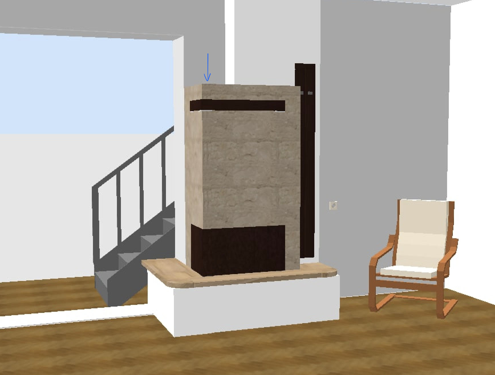 Если облицовка камина разделена на высокую и низкую секции как на картинке, и теплый контур изолирован в нижней секции.