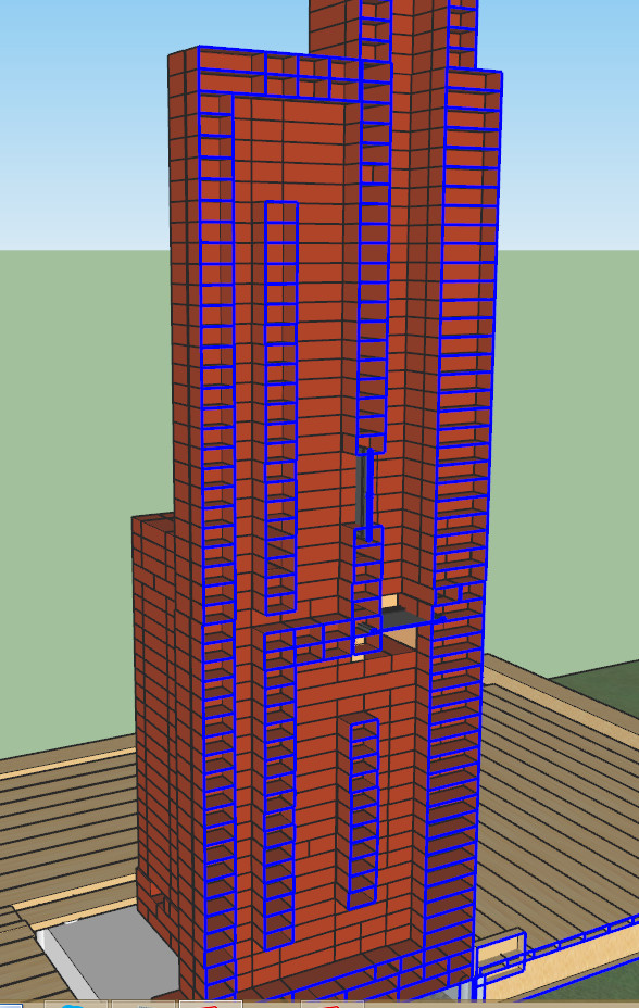 Могу ошибаться . То , что Вы расширили опускной канал заставит газы там двигаться медленнее и задерживаться как в миниколпаке, что и приведет к перегреву от которого хотели уйти . Щиток ваш имеет несимметричную конструкцию в плане распределения температур по сторонам - это вызовет напряжение в кладке . Посмотрите как здесь сделано .