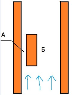 Не совсем понятна Ваша мысль. Потому что если посмотреть на канал в котором имеется движение газа, за счёт перепада давления у его разных сторон, в котором располагается препятствие(как на схеме в приложении), то станетет очевидно, что скорость потока, в зоне А будет меньше чем в зоне Б. Тоже самое, происходит и в топливнике-колпаке, но только на картину распределения скоростей потоков будет влиять температура самого газа и стенок канала, а также, геометрия и пространственное положение канала и препятствия в нём.