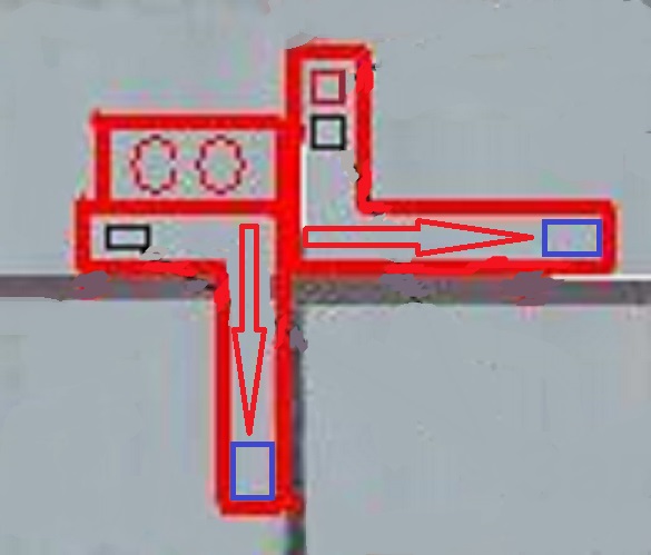 Извиняюсь, я вероятно, ошибся полагая что выход из щитка в верху, а внизу чистка. Сейчас я вроде бы разобрался в задумке ТС, скорее всего внизу выход, а верхнее отверстие для прямого хода.