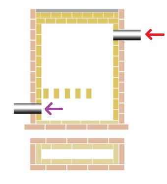 3. Подключение внизу к трубе -каналом в три ряда высотой. Внизу будущей трубы обязательно прочистка. В щитке -хотя бы пару штук в самом низу, можно широкие-как поддувальные. чтоб до всех каналов добраться. Трубу ложить отдельно, подключение входа щитка и прямого хода-гильзами соотв размера замурованными с помощью коалиновой ваты |