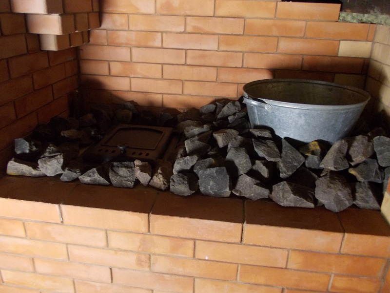 В только что рассмотренной печи каменная засыпка нагревается снизу. Соответственно, верхняя ее часть, куда и подается вода для парообразования, менее горячая, чем нижние слои. Проблема решается небольшим выстаиванием – задержкой, небольшим промежутком между топкой и самим процессом парилки.