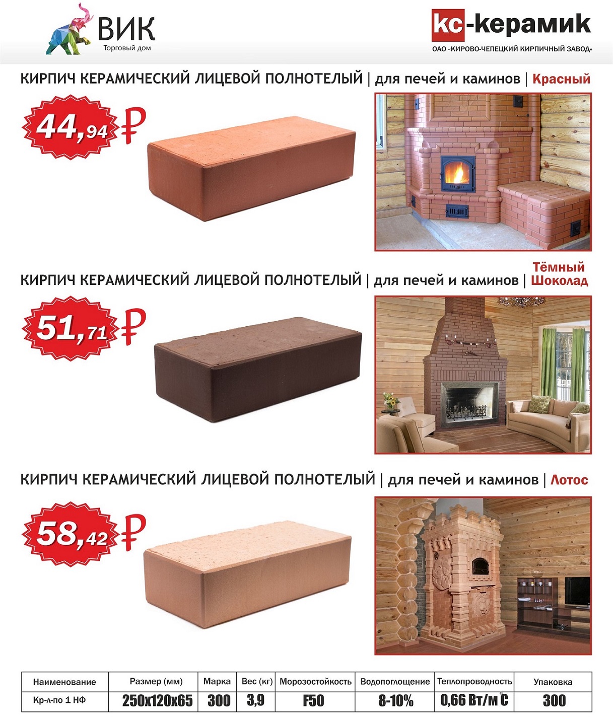 В спб появился Кировский кирпичик альтернатива растущему по ценику Лоде будем брать в новом году сравнивать с ЛСР Победой РАУФ . В ассортименте "ТД "ВИК" появилась продукция Кирово-Чепецкого кирпичного завода. В складской программе на данный момент представлено три цвета: красный, тёмный шоколад и лотос. Кирпич отличается необыкновенной легкостью ручной и механической обработки. Имеет однородную структуру, без трещин и пережогов, гладкую поверхность, а также правильную и однородную геометрию. С полным перечнем продукции Вы можете ознакомиться в наших офисах.