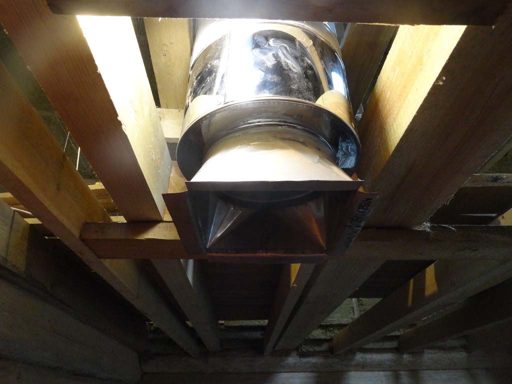 С дымоходом пришлось повозиться. Кирпичная в шестерик не входила ( расстояние между балками 480 мм.... посему пришлось воткнуть сэндвичь внутр.ф 250 мм., наружный 350 мм. , зазор между сэндвичем и балками заполнили фольгированным базальтом.