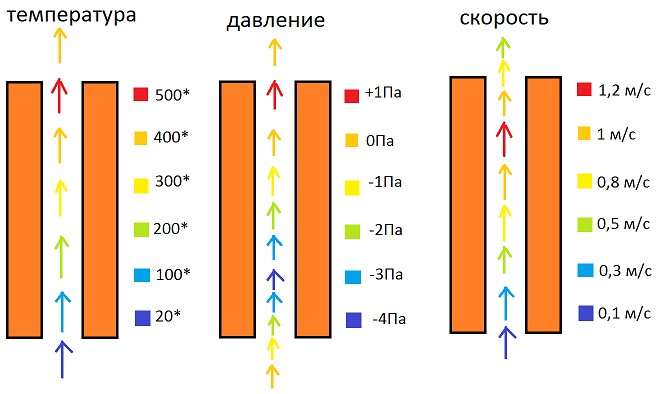 Например, представьте участок кирпичной трубы, нагретой до 500*С, размещённый в воздушном пространстве с температурой 20*С. В трубе естественно возникнет тяга, т.е. перепад давления и движение воздуха.
